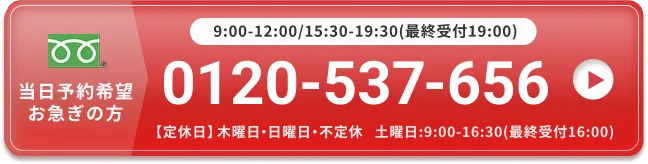 当日のご予約をご希望の方やWEB予約画面でご希望の日時に空きが無い場合はお電話でお問い合わせください。